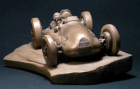 Bronze sculpture of Tazio Nuvolari in his winning Auto Union race car