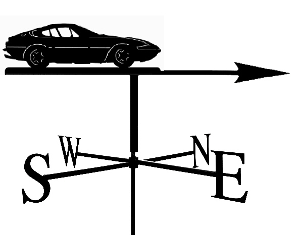 This stylish weathervane, artistically moulded to the design of the classic Ferrari Daytona is fully tested to ensure that the majority of the weight is at the front (the arrow) and the majority of the surface area is at the back (the design). When this bar is balanced correctly, the weathervane will spin so that the arrow points into the wind. There are three sizes available: Small: Measures approximately 46 cm across the cardinal points (north - south or east - west), and will suit a shed, garage or summer house. £240 Medium: (Most popular) Measures approximately 61 cm across the cardinal points and is designed for a larger building, such as a standard size house or larger garage or shed. £330 Large: Measures approximately 76 cms across the cardinal points and is made to be highly prominent on a larger size building. £420