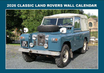 Colourful classic Land Rover wall calendar which features a great range of contemporary photographs of a Series 1, Series 2, Series 3, 101 Forward Control, second generation Range Rover, plus a variety of specialist vehicles, along with brief historical details of each model. There's also ample additional space for day-to-day information, as well as notes for the month